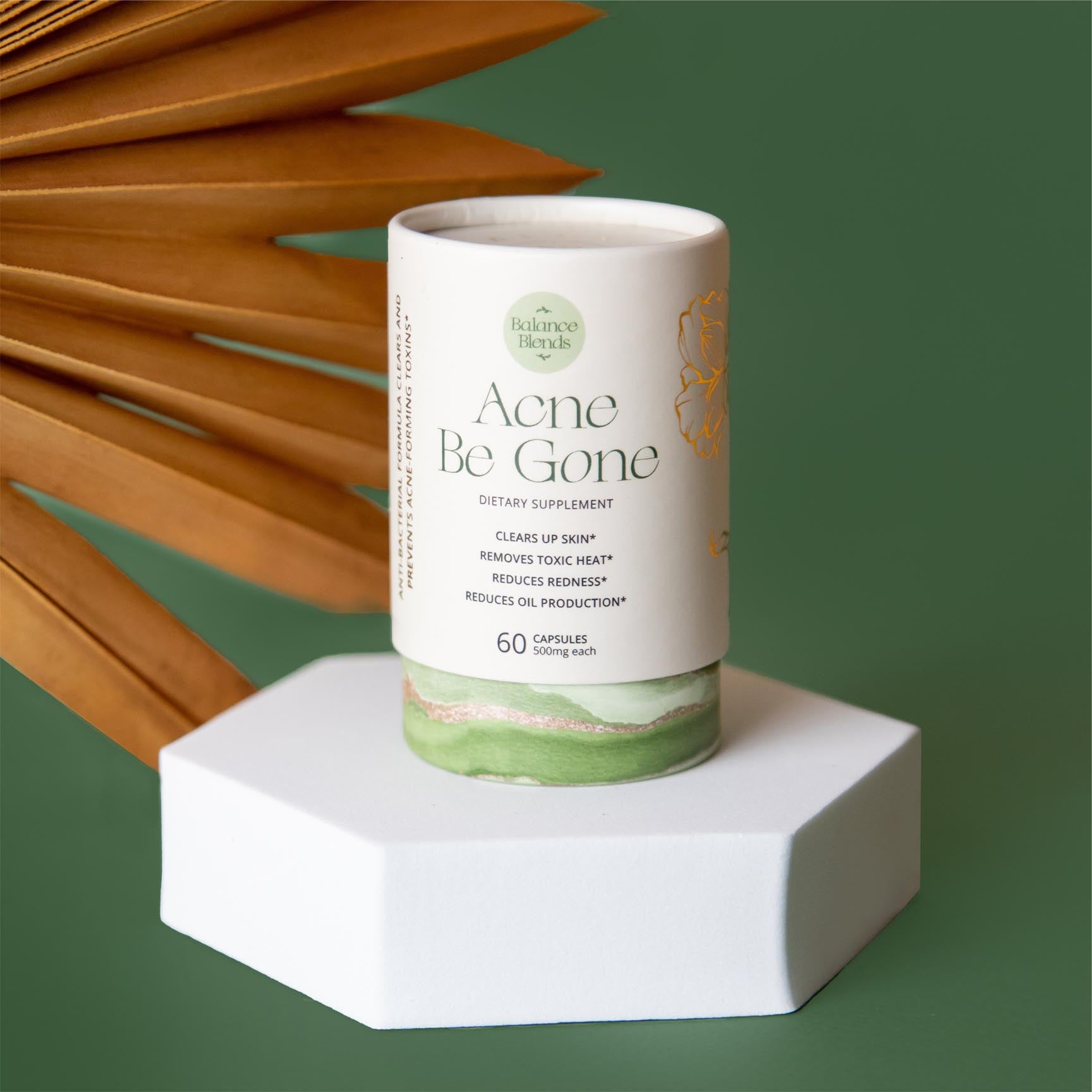 The Acne Be Gone blend contains multiple concentrated extracts of the most powerful (and tested) herbs in traditional Eastern medicine, as well as vitamins and amino acids. These compounds work together to create a ripple effect of healing in your body that leads to smooth, hydrated, and acne-free skin.